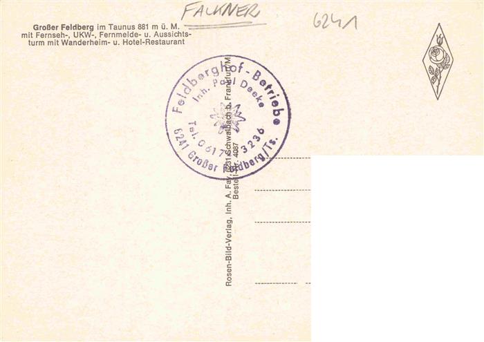 74036077 Falkner Falke Falcon Faucon Halcon Grosser Feldberg Taunius postalisch nicht gelaufen Erhaltung siehe scans [IrynaD87] KatCode: 22540000003400