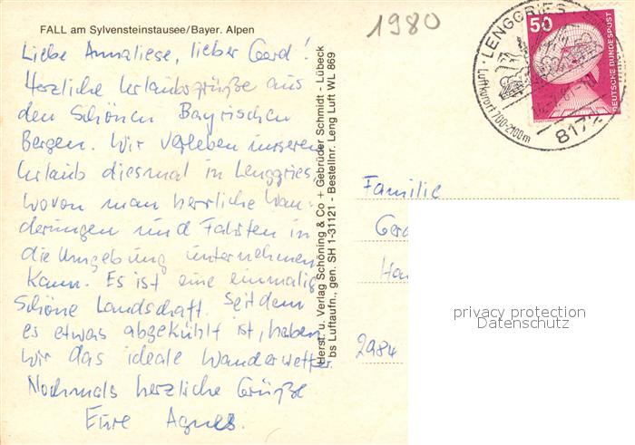 73170486 alte Postkarte Fall Bad Toelz Sylvensteinstausee Bayerische Alpen Fliegeraufnahme postalisch gelaufen Erhaltung siehe scans [FriedD77] KatCode: 11110009173135
