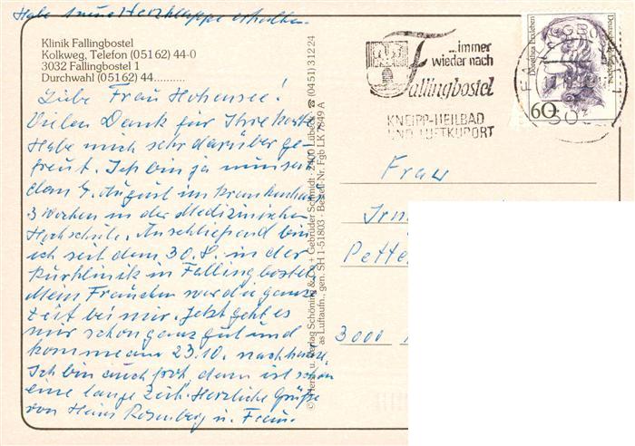 73904203 alte Postkarte Fallingbostel Bad Klinik Fallingbostel Fliegeraufnahme postalisch gelaufen Erhaltung siehe scans [WerneD78] KatCode: 11110003358008