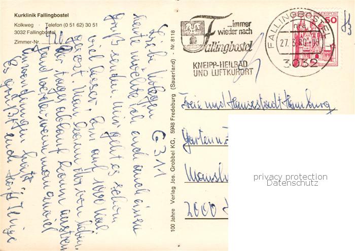 73858879 alte Postkarte Fallingbostel Bad Kurklinik Fallingbostel Gastraum Hallenbad Zimmer postalisch gelaufen Erhaltung siehe scans [WerneD78] KatCode: 11110003358008