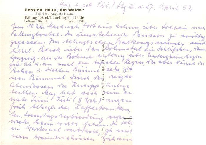 73878149 Fallingbostel Bad Pension Haus Am Walde postalisch nicht gelaufen Erhaltung siehe scans [FriedD77] KatCode: 11110003358008