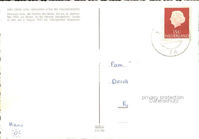 72412414 alte Postkarte Fallingbostel Grab Hermann Loens postalisch gelaufen Erhaltung siehe scans KatCode: 11110003358008