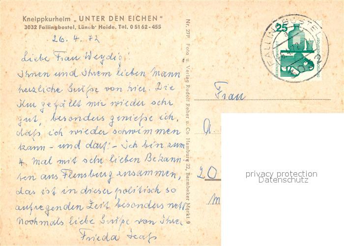 73173690 alte Postkarte Fallingbostel Kneippkurheim Unter den Eichen postalisch gelaufen Erhaltung siehe scans [LiesaD40] KatCode: 11110003358008