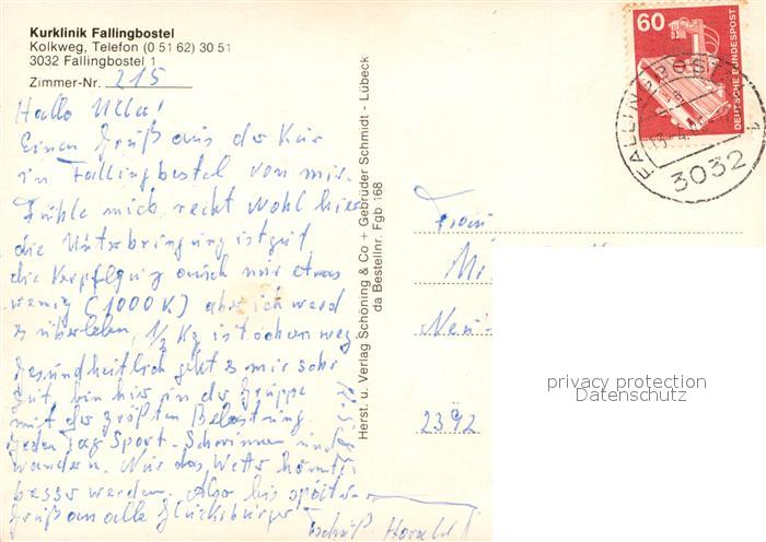 73721683 alte Postkarte Fallingbostel Kurklinik Fallingbostel Hallenbad Fitness und Gymnastikraeume postalisch gelaufen Erhaltung siehe scans [WerneD78] KatCode: 11110003358008