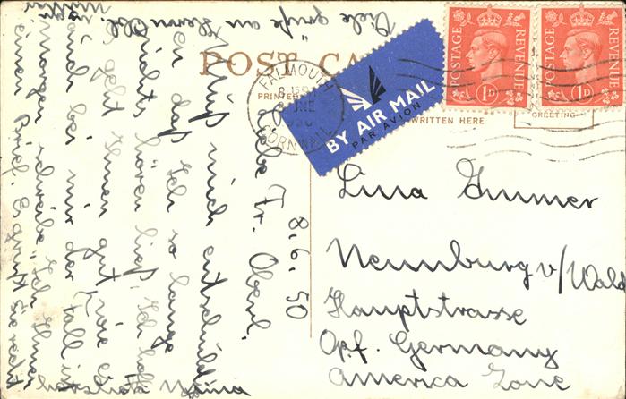 old postcard Falmouth Cornwall Gyllyngvase Beach postalisch gelaufen