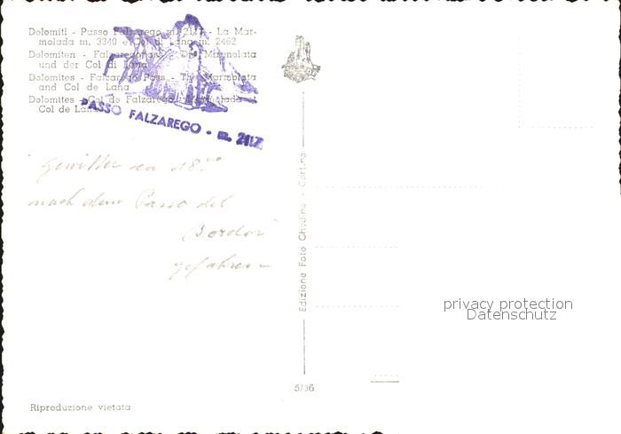 Falzaregopass Berghotel Restaurant Marmolata Col di Lana Dolomiten postalisch nicht gelaufen Erhaltung siehe scans [FriedD77]