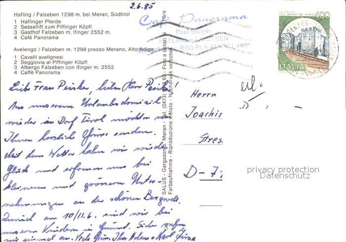 old postcard Falzeben Haflinger Sessellift Cafe Panorama postalisch gelaufen Erhaltung siehe scans
