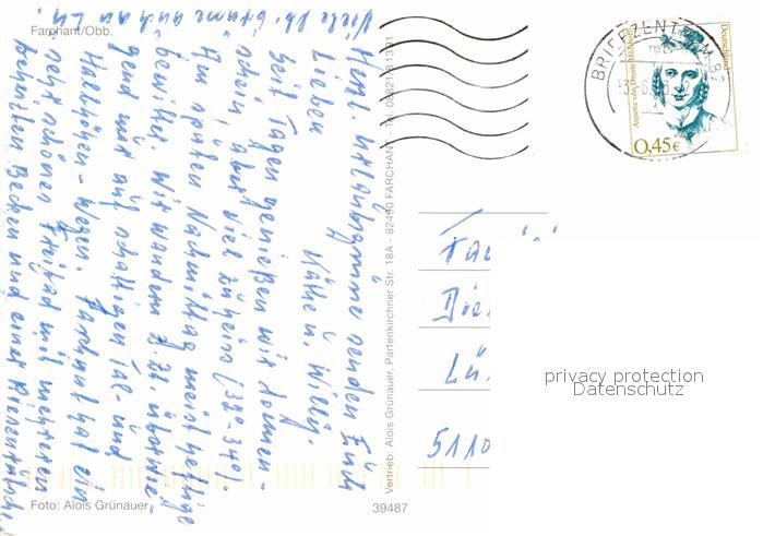 72865489 alte Postkarte Farchant Gesamtansicht mit Alpenpanorama Wasserfall Ortsmotiv mit Kirche Freibad postalisch gelaufen Erhaltung siehe scans [FriedD77] KatCode: 11110009180116