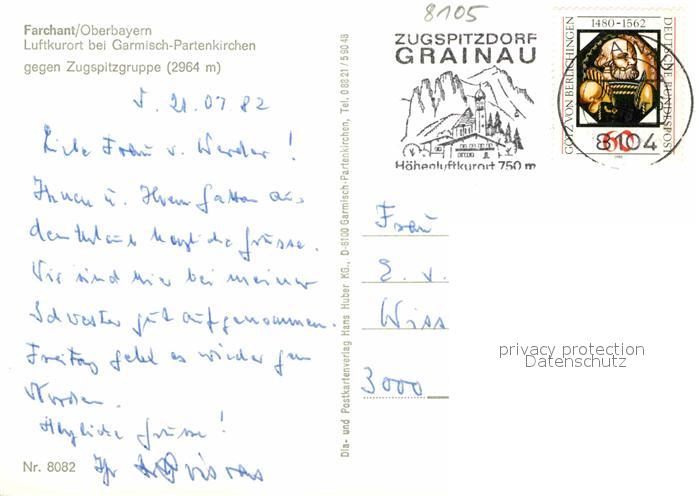 72912394 alte Postkarte Farchant Ortsansicht mit Kirche Luftkurort gegen Zugspitzgruppe Wettersteingebirge postalisch gelaufen Erhaltung siehe scans [FriedD77] KatCode: 11110009180116