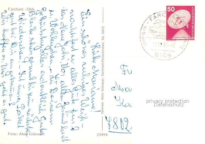 73596801 alte Postkarte Farchant Panorama Strassenpartie Kirche Bruecke postalisch gelaufen Erhaltung siehe scans [WerneD78] KatCode: 11110009180116
