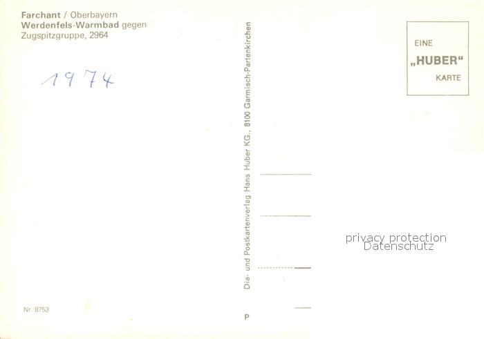 73077016 Farchant Werdenfels Warmbad Zugspitzgruppe postalisch nicht gelaufen Erhaltung siehe scans [KathaD81] KatCode: 11110009180116