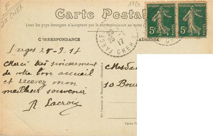 13872898 Farges-en-Septaine 18 Cher La Grande Rue postalisch gelaufen Erhaltung siehe scans [FriedD77] carte postale Frie Katcode 11170018118092