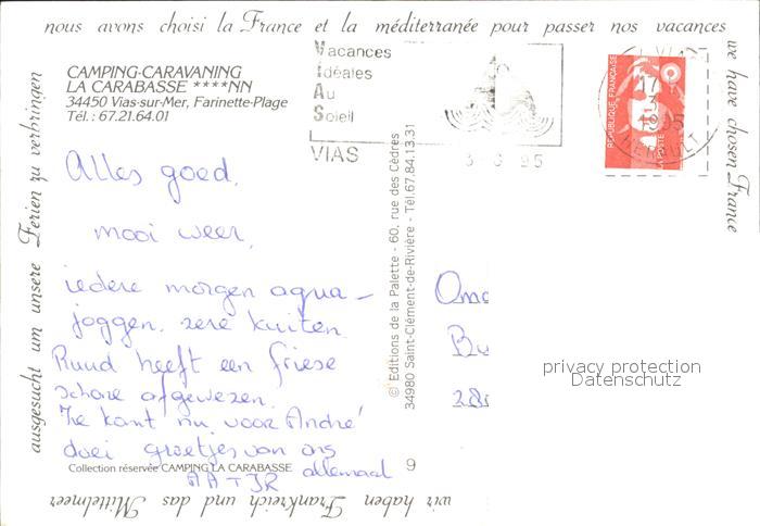 72037643 carte postale Farinette Plage Camping Caravaning La Carabasse Swimming Pool Campotel postalisch gelaufen Erhaltung siehe scans KatCode: 11070051005966
