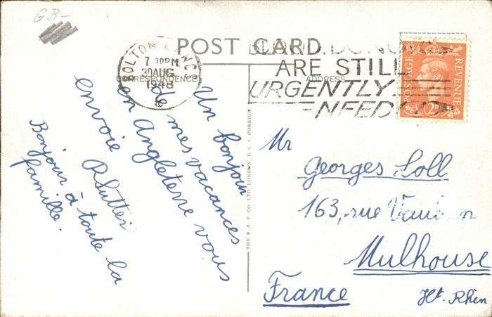 11474926 old postcard Farnworth Bolton Library Town Hall postalisch gelaufen Erhaltung siehe scans KatCode: 11570UKD3D32BL