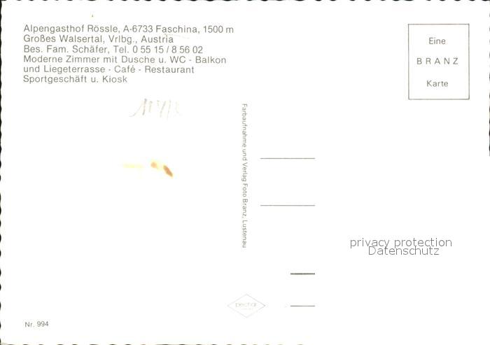 72485339 Faschina Alpengasthof Terrasse Gastraum Roessle Panorama postalisch nicht gelaufen Erhaltung siehe scans KatCode: 11390341080109
