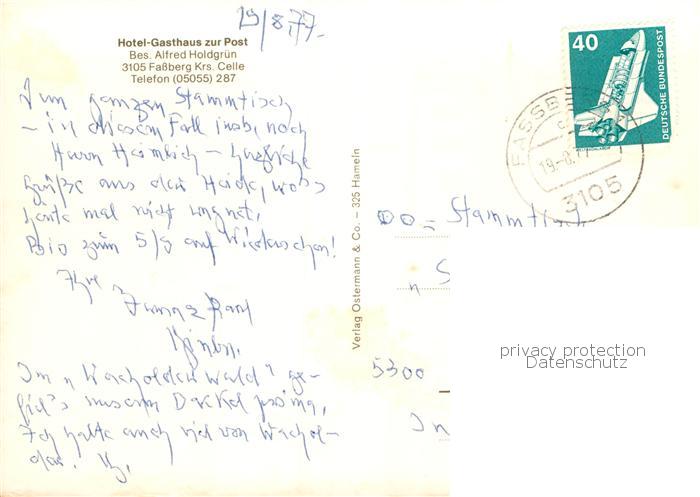73838121 alte Postkarte Fassberg Hotel Gasthaus Zur Post Lueneburger Heide postalisch gelaufen Erhaltung siehe scans [WerneD78] KatCode: 11110003351010