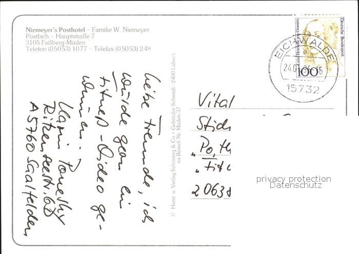 72467324 alte Postkarte Fassberg Mueden Niemeyers Posthotel postalisch gelaufen Erhaltung siehe scans KatCode: 11110003351010