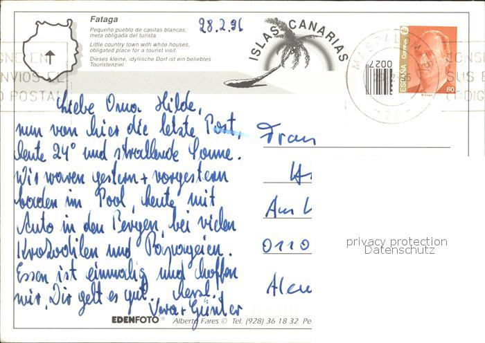 old postcard Fataga Teilansicht postalisch gelaufen Erhaltung siehe scans