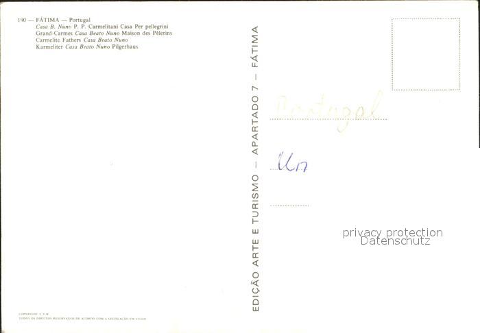 Fatima Casa Beato Nuno Carmelitani Casa Per pellegrini postalisch nicht gelaufen Erhaltung siehe scans