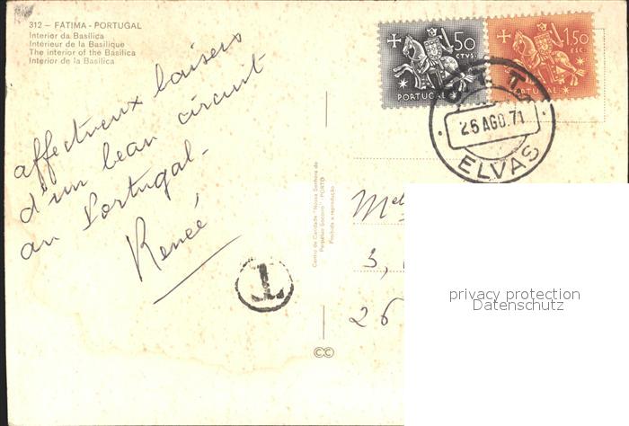 old postcard Fatima Interior da Basilica postalisch gelaufen Erhaltung siehe scans