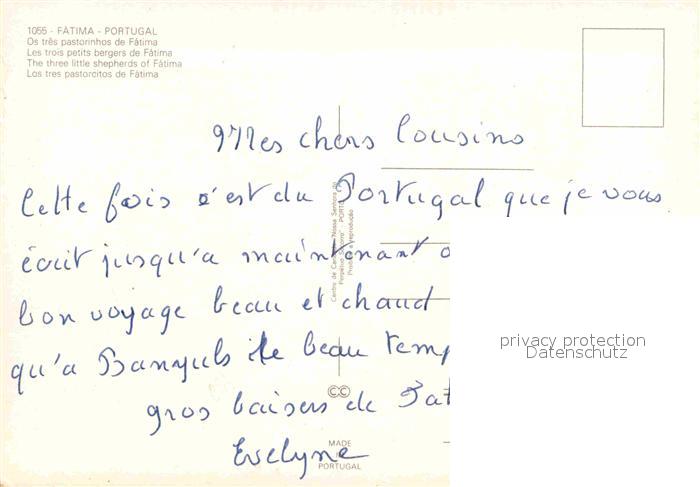Fatima Les trois petits bergers de Fatima Jacinta Francisco Lucia postalisch nicht gelaufen Erhaltung siehe scans [WerneD78]