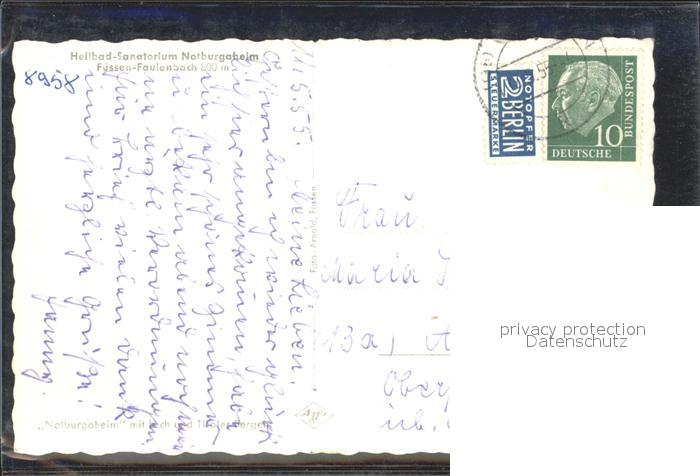 72146718 alte Postkarte Faulenbach Fuessen postalisch gelaufen Erhaltung siehe scans KatCode: 11110009777129
