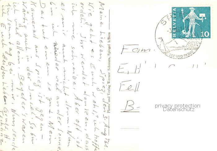 13853135 alte Postkarte Faulensee Bad Thunersee BE Panorama Berner Alpen postalisch gelaufen Fliegeraufnahme Erhaltung siehe scans [FriedD77] KatCode: 11470060205566
