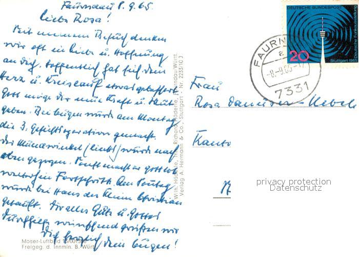 73736618 alte Postkarte Faurndau Fliegeraufnahme postalisch gelaufen Erhaltung siehe scans [WerneD78] KatCode: 11110008117026