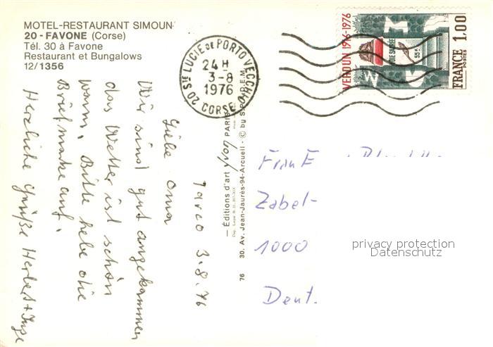 13743320 Favone Motel Restaurant Simoun Restaurant et Bungalows Terrasse postalisch gelaufen Erhaltung siehe scans [WerneD78] carte postale Wern Katcode 1117002A42A308