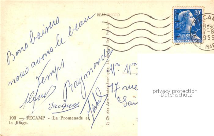 13593653 Fecamp La Promenade et la Plage postalisch gelaufen Erhaltung siehe scans [WerneD78] carte postale Wern Katcode 11170076276259