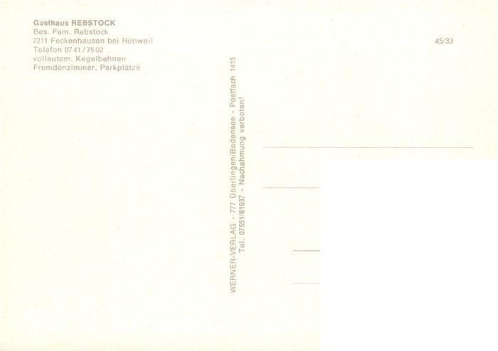 73896456 Feckenhausen Gasthaus Pension Rebstock Gastraum Gaestezimmer Kegelbahn postalisch nicht gelaufen Erhaltung siehe scans [WerneD78] KatCode: 11110008325049