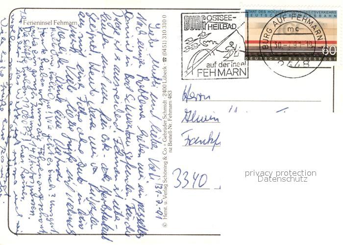 73122977 alte Postkarte Fehmarn Bruecke Hochhaus Hafen Faehre postalisch gelaufen Erhaltung siehe scans [NatalD47] KatCode: 11110001055046