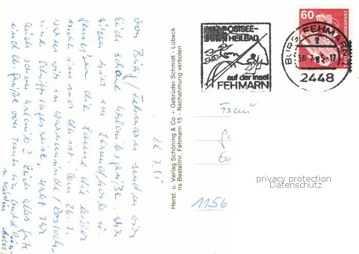 72855504 alte Postkarte Fehmarn Bruecke Strand Lageplan postalisch gelaufen Erhaltung siehe scans [LiesaD40] KatCode: 11110001055046