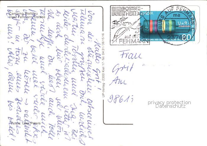 72186597 alte Postkarte Fehmarn Camping Wallnau postalisch gelaufen Erhaltung siehe scans KatCode: 11110001055046