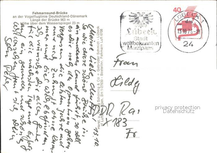 72306496 alte Postkarte Fehmarn Fehmarnsund Bruecke Fliegeraufnahme postalisch gelaufen Erhaltung siehe scans KatCode: 11110001055046
