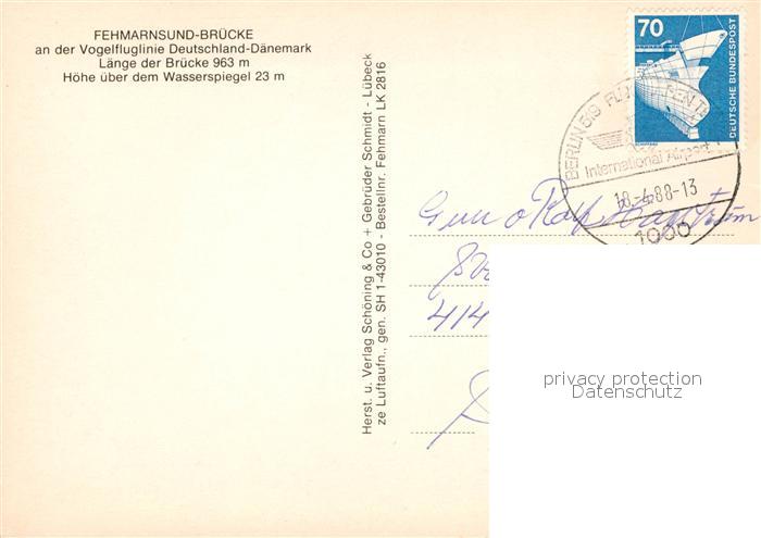 73045255 alte Postkarte Fehmarn Fehmarnsund Bruecke Fliegeraufnahme postalisch gelaufen Erhaltung siehe scans [WerneD78] KatCode: 11110001055046