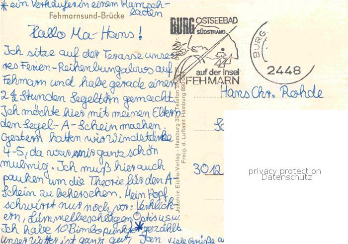 72872539 alte Postkarte Fehmarn Fehmarnsundbruecke Fliegeraufnahme postalisch gelaufen Erhaltung siehe scans [FriedD77] KatCode: 11110001055046