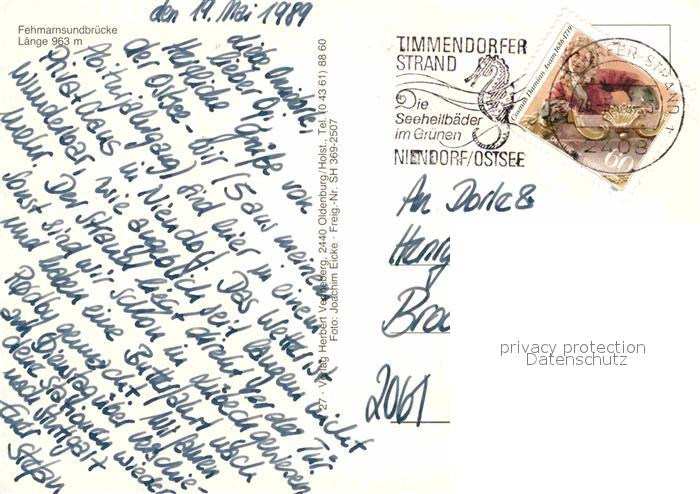 72862379 alte Postkarte Fehmarn Fehmarnsundbruecke Fliegeraufnahme postalisch gelaufen Erhaltung siehe scans [FriedD77] KatCode: 11110001055046