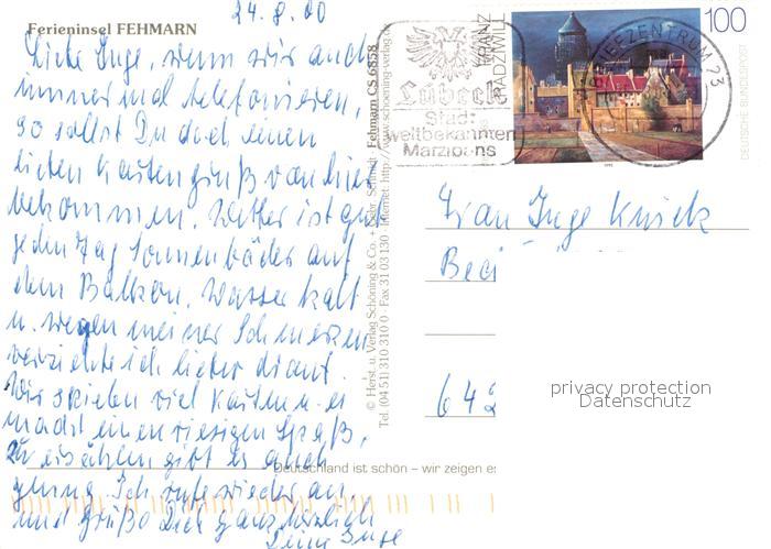 73182351 alte Postkarte Fehmarn Fliegeraufnahme postalisch gelaufen Erhaltung siehe scans [NatalD47] KatCode: 11110001055046