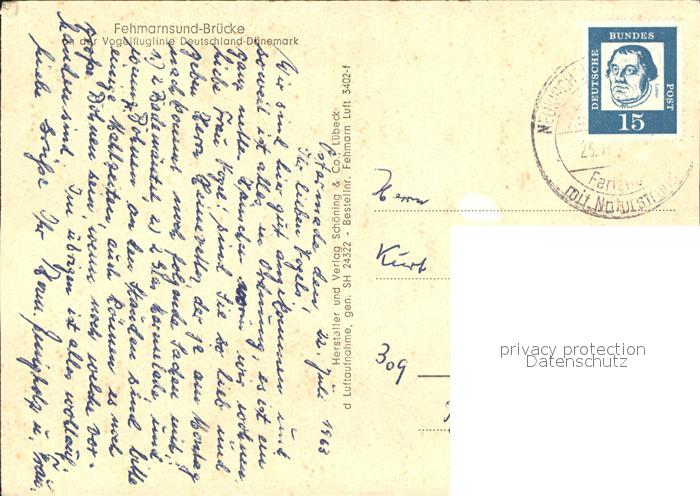 72585443 alte Postkarte Fehmarn Fliegeraufnahme Fehmarnsundbruecke postalisch gelaufen Erhaltung siehe scans [AndreD76] KatCode: 11110001055046
