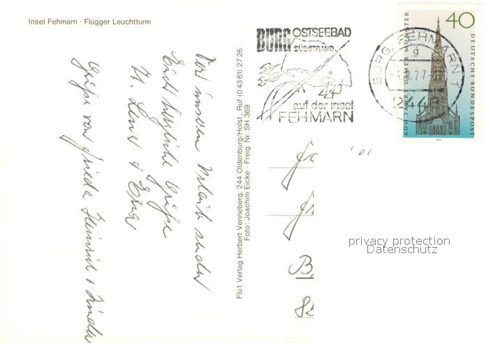 73024052 alte Postkarte Fehmarn Fluegger Leuchtturm postalisch gelaufen Erhaltung siehe scans [KathaD81] KatCode: 11110001055046