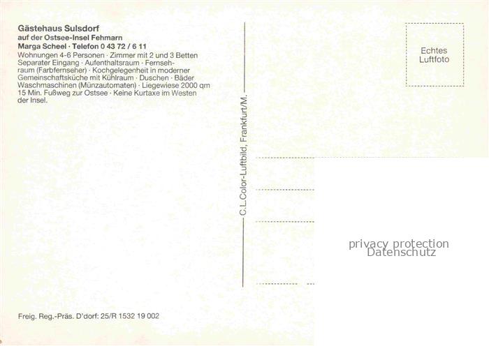 74109942 Fehmarn Ostsee Schleswig-Holstein Gaestehaus Sulsdorf Fliegeraufnahme postalisch nicht gelaufen Erhaltung siehe scans [WerneD78] Wern Katcode 11110001055046