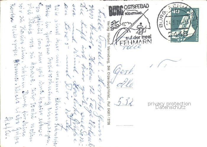 72413096 alte Postkarte Fehmarn Ostseebad Burg postalisch gelaufen Erhaltung siehe scans KatCode: 11110001055046
