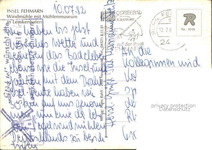 72052021 alte Postkarte Fehmarn Windmuehle mit Muehlenmuseum postalisch gelaufen Erhaltung siehe scans KatCode: 11110001055046