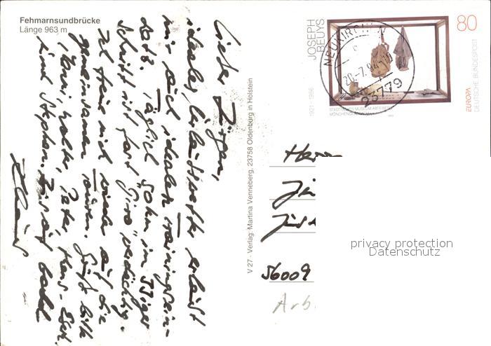71991959 alte Postkarte Fehmarnsund Bruecke Fliegeraufnahme postalisch gelaufen Erhaltung siehe scans KatCode: 11110001055046