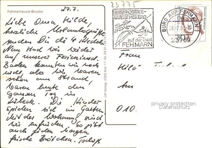 72566934 alte Postkarte Fehmarnsund Fliegeraufnahme Bruecke postalisch gelaufen Erhaltung siehe scans [LiesaD40] KatCode: 11110001055046
