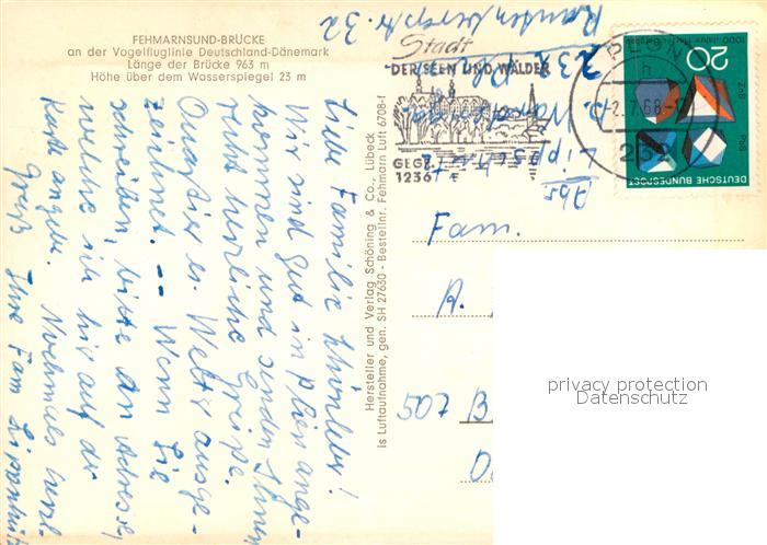 73017668 alte Postkarte Fehmarnsund Fliegeraufnahme mit Fehmarnsundbruecke postalisch gelaufen Erhaltung siehe scans [WerneD78] KatCode: 11110001055046