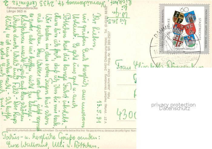 73211097 alte Postkarte Fehmarnsundbruecke Fliegeraufnahme postalisch gelaufen Erhaltung siehe scans [WerneD78] KatCode: 11110001055046