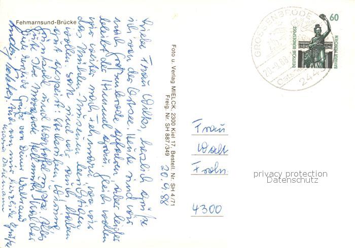 73541984 alte Postkarte Fehmarnsundbruecke Fliegeraufnahme postalisch gelaufen Erhaltung siehe scans [WerneD78] KatCode: 11110001055046