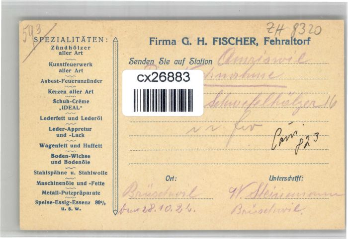 10849681 alte Postkarte Fehraltorf Firma Fischer postalisch gelaufen KatCode: 11470260900392